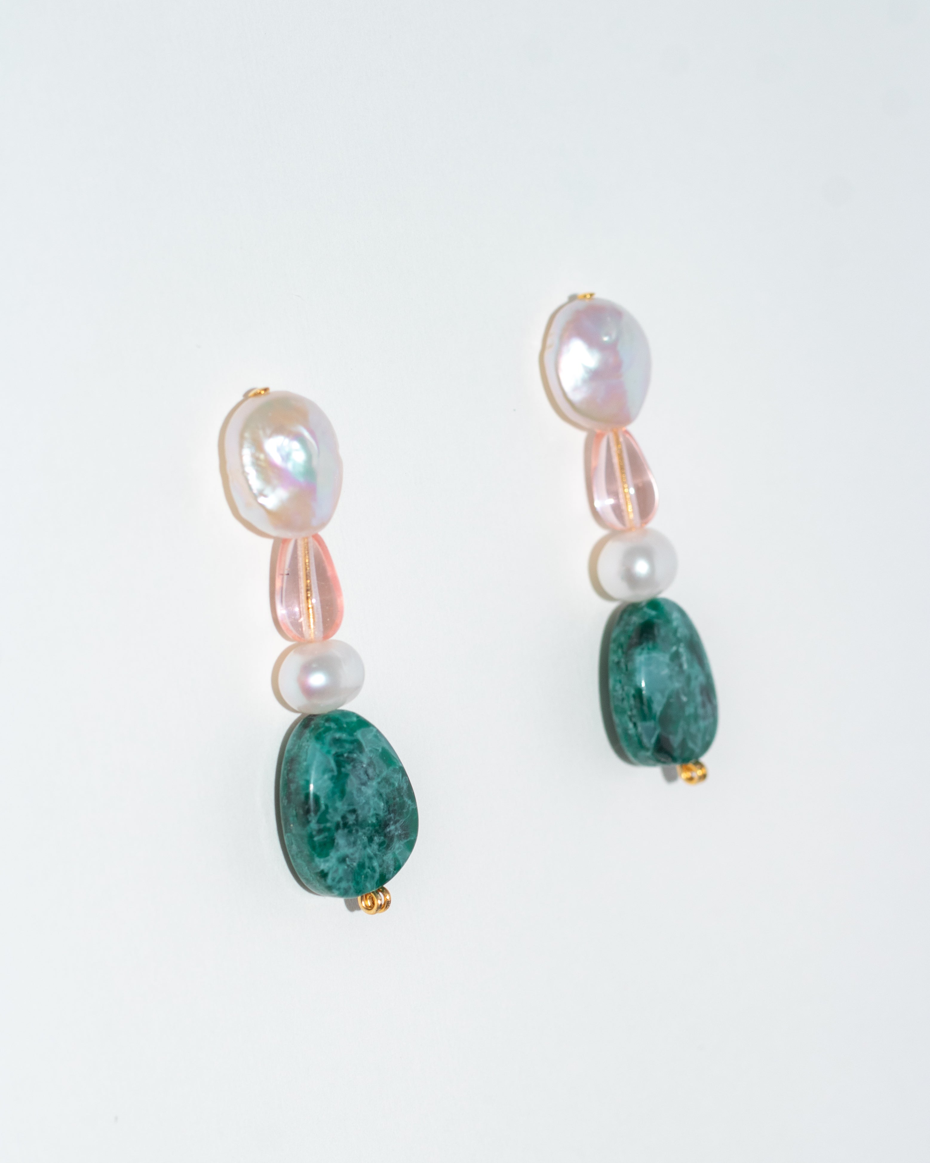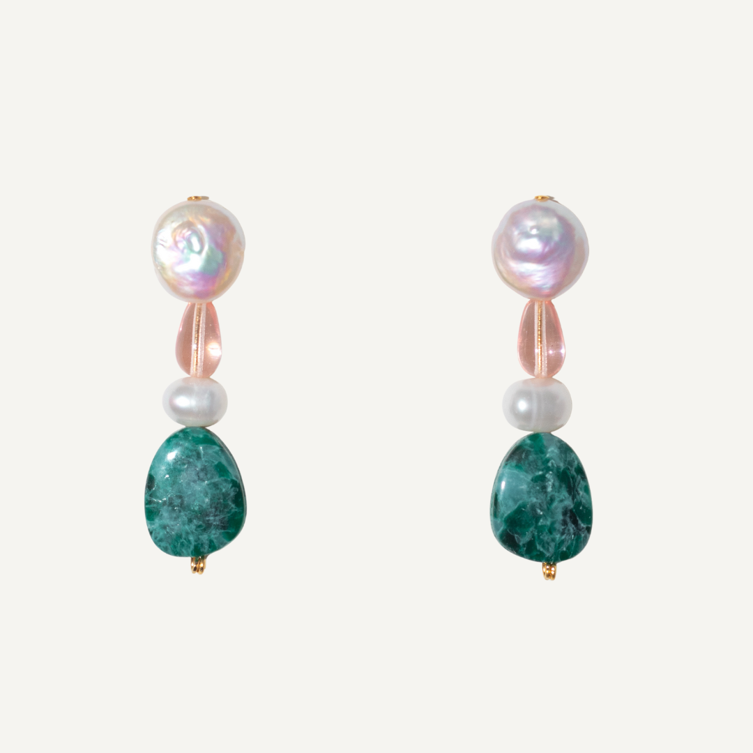Emerald and Pink Pearl Stack Earrings