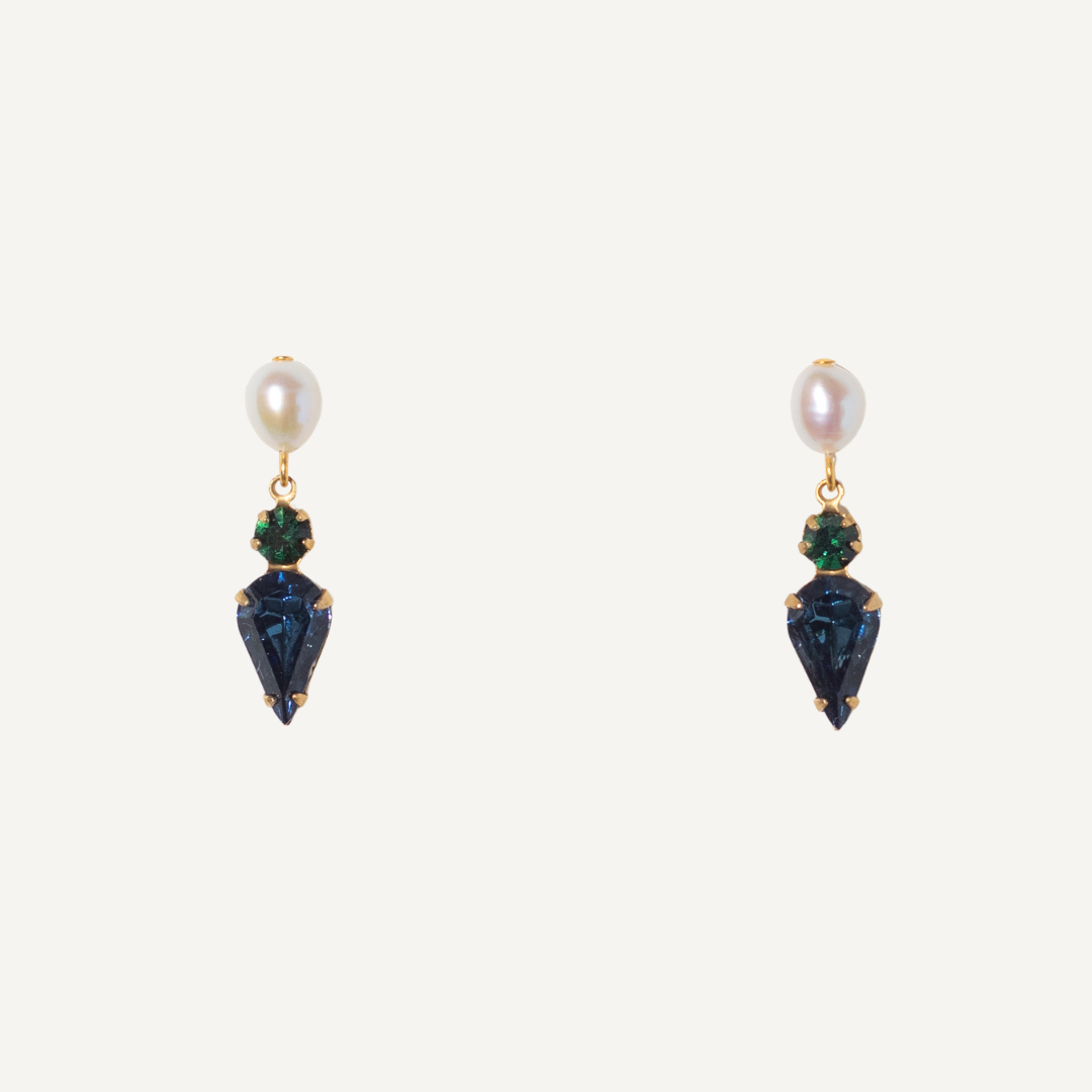 Pearl and Teal Rhinestone Drops