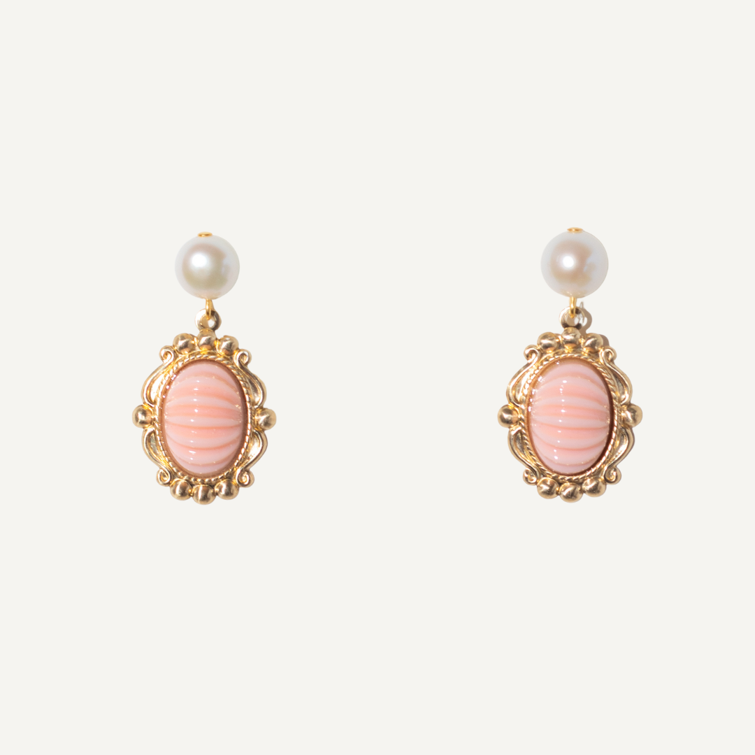 Coral Cabochon Earrings